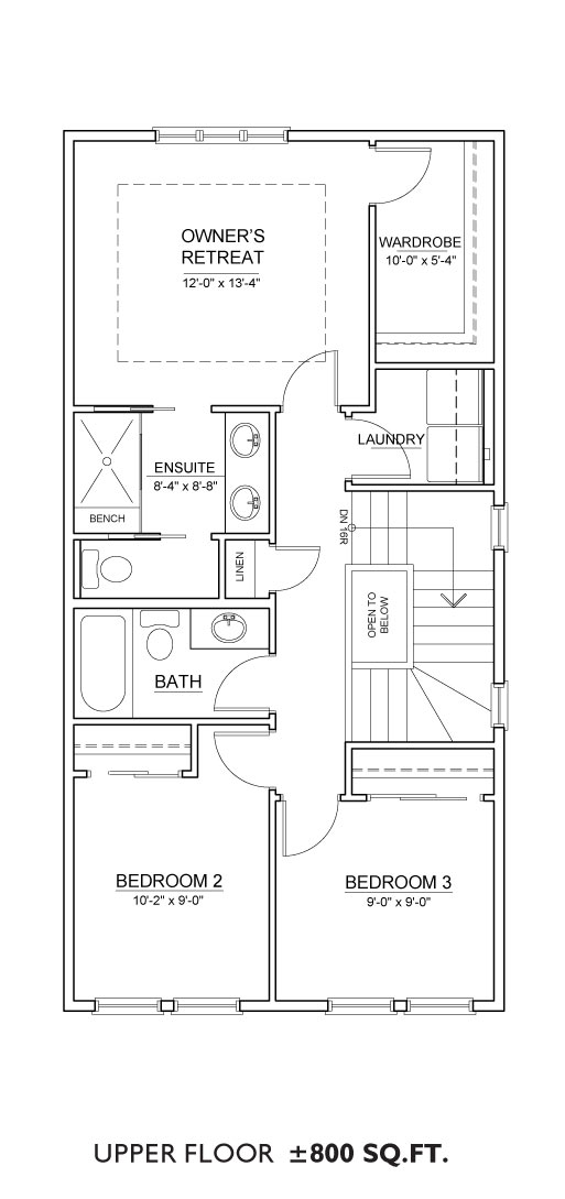 Features: The Redwood floor plan consists of 788 sq.ft. main floor space and a 800 sq.ft. upper floor. Including 3 bedrooms, 2.5 bathrooms, the main floor has a corner style kitchen with island & an open view from front to back of your house. The upper floor features a 3-bedroom layout with a sizeable retreat & ensuite.