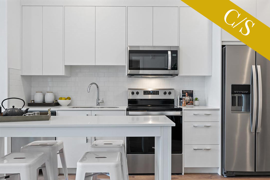 Experience the pinnacle of luxury living with high-end finishes, including wide plank flooring and a designer lighting package. The custom chef-inspired kitchen boasts stainless steel appliances, soft-close cabinetry, and elegant quartz countertops. Additional conveniences include an in-suite washer and dryer, stylish window coverings, and a balcony off the living room perfect for relaxation.