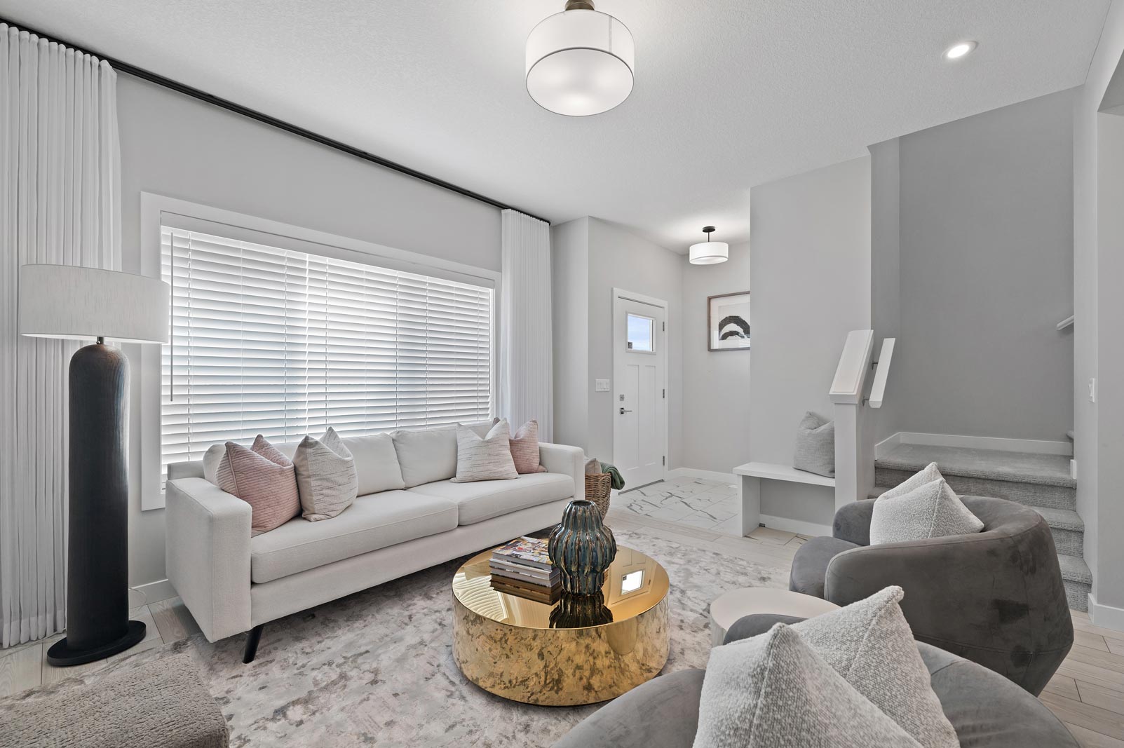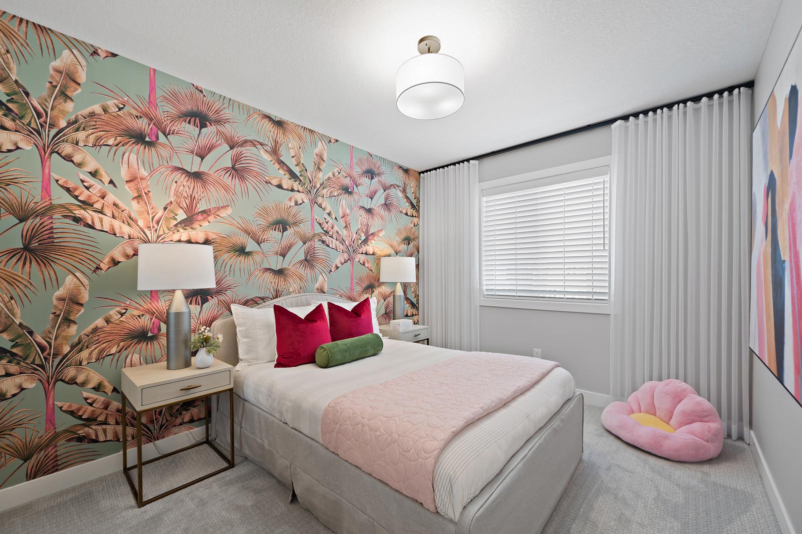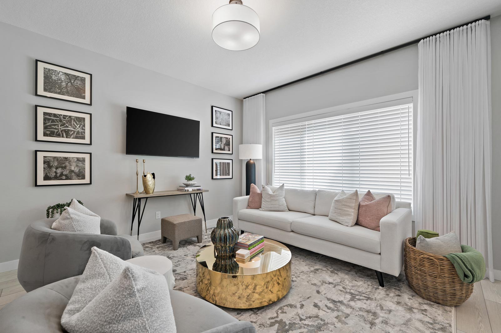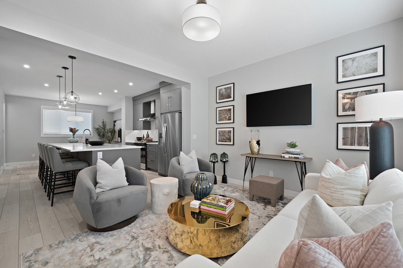 This Rear-Drive home features a bright chef’s kitchen with full-height cabinetry, soft-close doors & drawers, eating bar with quartz countertops, stainless steel appliance package and pantry opening to the dining and great room. The main floor features 9′ ceilings, LVP flooring, 2-piece bathroom and mudroom. Step upstairs to the primary suite with highlights such as a tray ceiling, ensuite and spacious closet. The upper floor features a central bonus room, 2 additional bedrooms, full bathroom and laundry area.