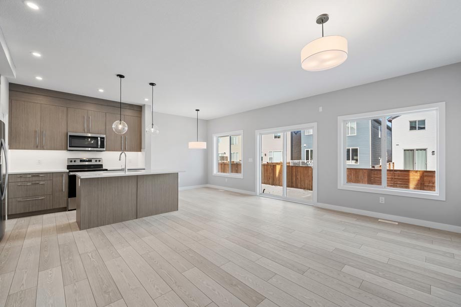 This new home in Carrington features a bright chef’s kitchen with full-height cabinetry, soft-close doors & drawers, eating bar with quartz countertops, stainless steel appliance package and walk-thru pantry. The main floor features 9′ ceilings, LVP flooring, 2-piece bathroom, mudroom, and separate side entrance. Step upstairs to the primary suite with highlights such as a tray ceiling, 4-piece ensuite and walk-in closet. The upper floor features a central bonus room, 2 additional bedrooms, full bathroom and laundry area.