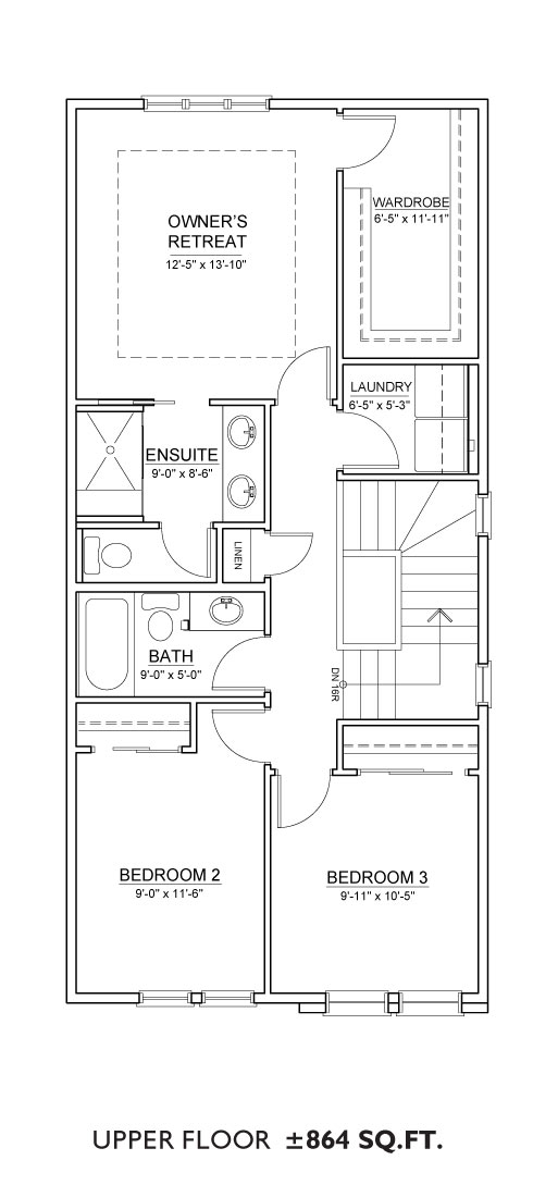 Features: The Finch includes a 837 sq.ft. open & airy main floor plan. The upper floor is 864 sq.ft. with 3 large bedrooms, 2 bathrooms and laundry room.