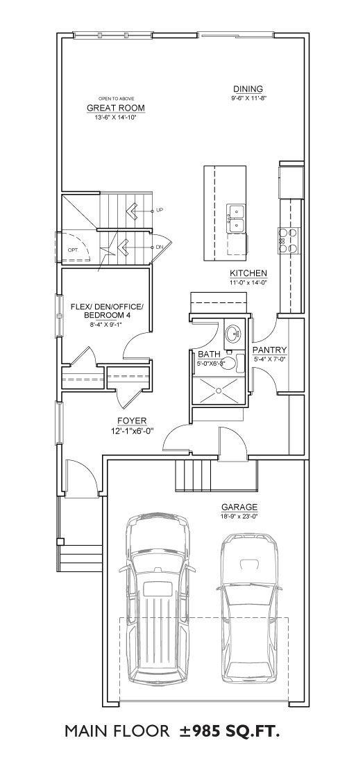 Features: The Mystic III plan includes 985 sq.ft. main floor, 1,237 sq.ft. upper floor with various bedroom options, and a bonus room. The main floor has layout options including adding a spice kitchen, pantry, mudroom, and a double-height great room.