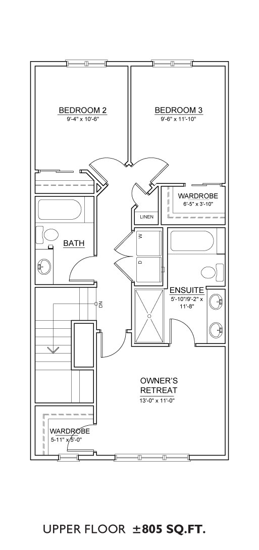 Features: The Olive II floor plan includes 795 sq.ft. of open main floor space and 805 sq.ft. on the upper floor. This plan features a 3-bedroom layout with a flex office/den on the main floor that could also be a 4th bedroom, upstairs laundry and 3 full bathrooms.