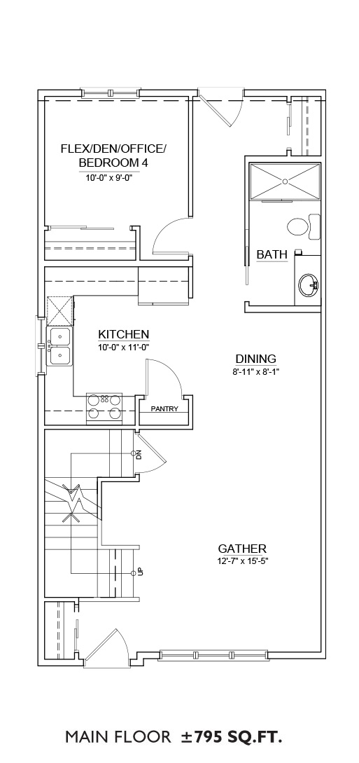 Features: The Olive floor plan includes 795 sq.ft. of open main floor space and 805 sq.ft. on the upper floor. This plan features a 3-bedroom layout with a flex office/den on the main floor that could also be a 4th bedroom, upstairs laundry and 3 full bathrooms.