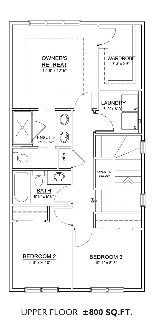 Features: The Redwood floor plan consists of 788 sq.ft. main floor space and a 800 sq.ft. upper floor. Including 3 bedrooms, 2.5 bathrooms, the main floor has a corner style kitchen with island & an open view from front to back of your house. The upper floor features a 3-bedroom layout with a sizeable retreat & ensuite.